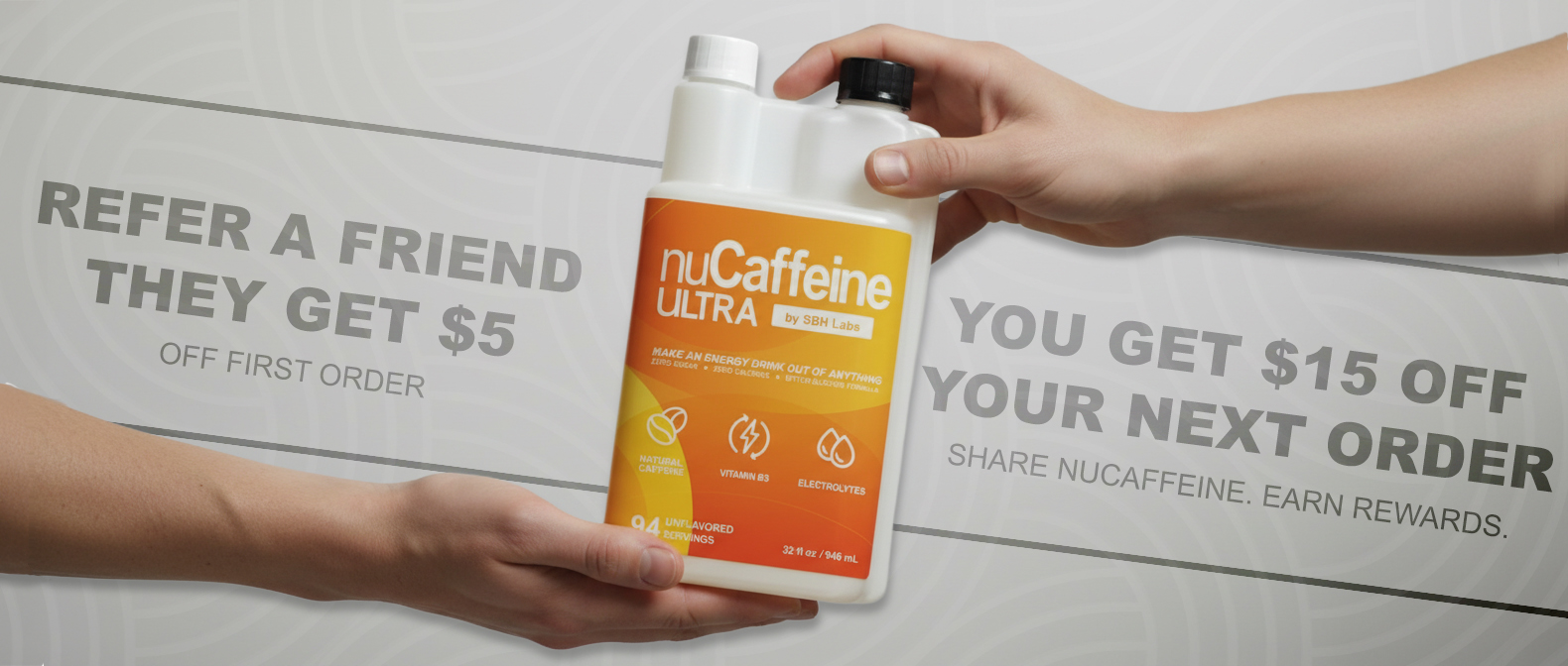 nuCaffeine is a liquid caffeine concentrate that you can add to any beverage to make your own energy drinks at home.